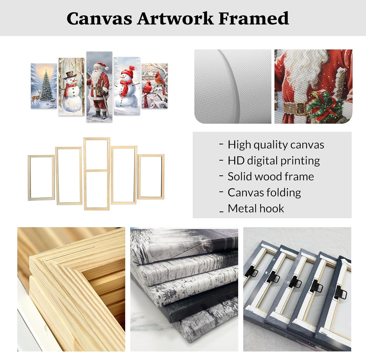 Why Choose This 5 Piece Santa Snowman Christmas Tree And Deer Canvas Wall Art Decor